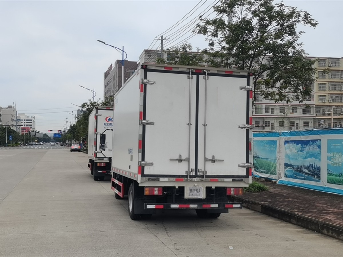(2)廂板材質(zhì):內(nèi)外壁板選用國(guó)內(nèi)優(yōu)質(zhì)玻璃鋼(不吸光、隔熱性好、硬度強(qiáng)、抗氧化);中間保溫層為XPS擠塑聚笨板或者聚氨酯發(fā)泡;廂體厚度8CM。地板采用鋁花紋板,門(mén)邊條采用迷宮式橡膠密封條。