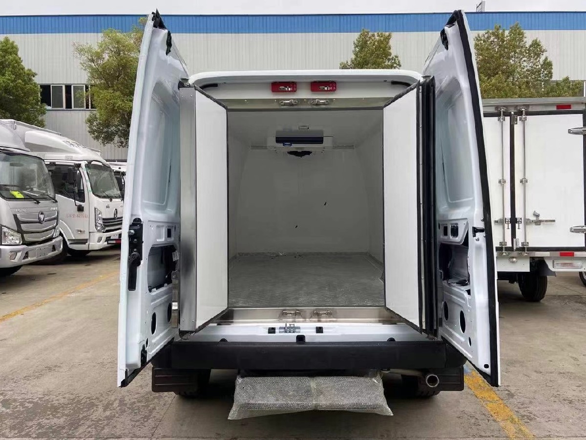 (2)廂板材質:內外壁板選用國內優質玻璃鋼(不吸光、隔熱性好、硬度強、抗氧化);中間保溫層為XPS擠塑聚笨板;廂體厚度8CM。地板采用鋁花紋板,門邊條采用迷宮式橡膠密封條。