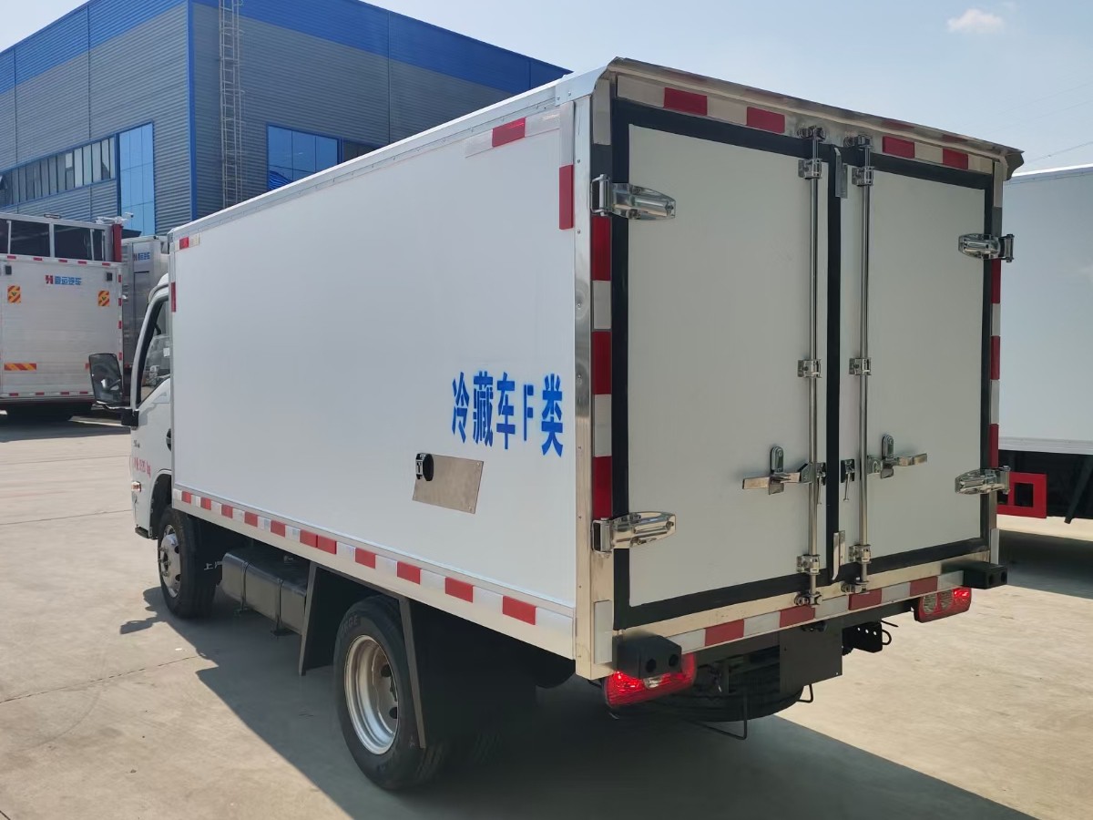 (2)廂板材質:內外壁板選用國內優質玻璃鋼(不吸光、隔熱性好、硬度強、抗氧化);中間保溫層為XPS擠塑聚笨板或聚氨酯;廂體厚度8CM。地板采用鋁花紋板,門邊條采用迷宮式橡膠密封條。