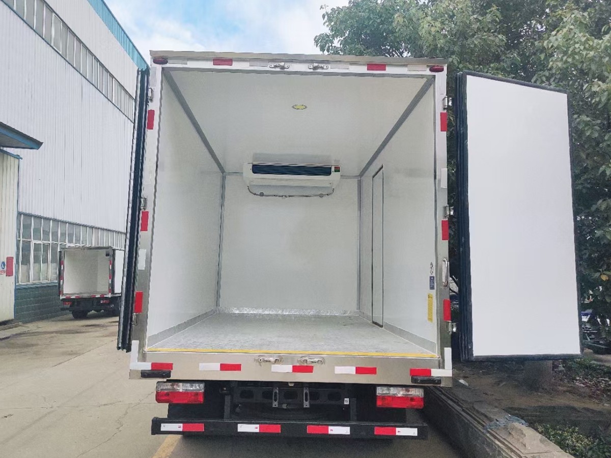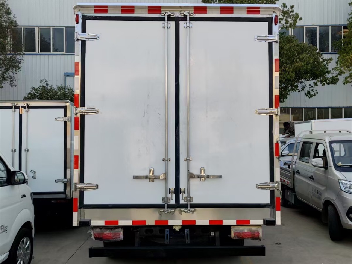 (2)廂板材質(zhì):內(nèi)外壁板選用國內(nèi)優(yōu)質(zhì)玻璃鋼(不吸光、隔熱性好、硬度強、抗氧化);中間保溫層為XPS擠塑聚笨板或聚氨酯;廂體厚度8CM。地板采用鋁花紋板,門邊條采用迷宮式橡膠密封條。