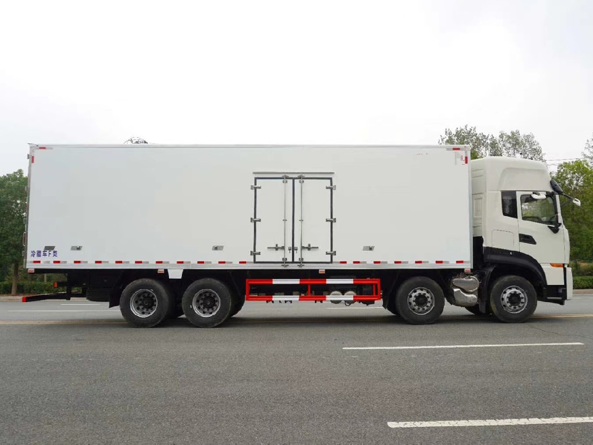 (2)廂板材質:內外壁板選用國內優質玻璃鋼(不吸光、隔熱性好、硬度強、抗氧化);中間保溫層為XPS擠塑聚笨板;廂體厚度8CM。地板采用鋁花紋板,門邊條采用迷宮式橡膠密封條。