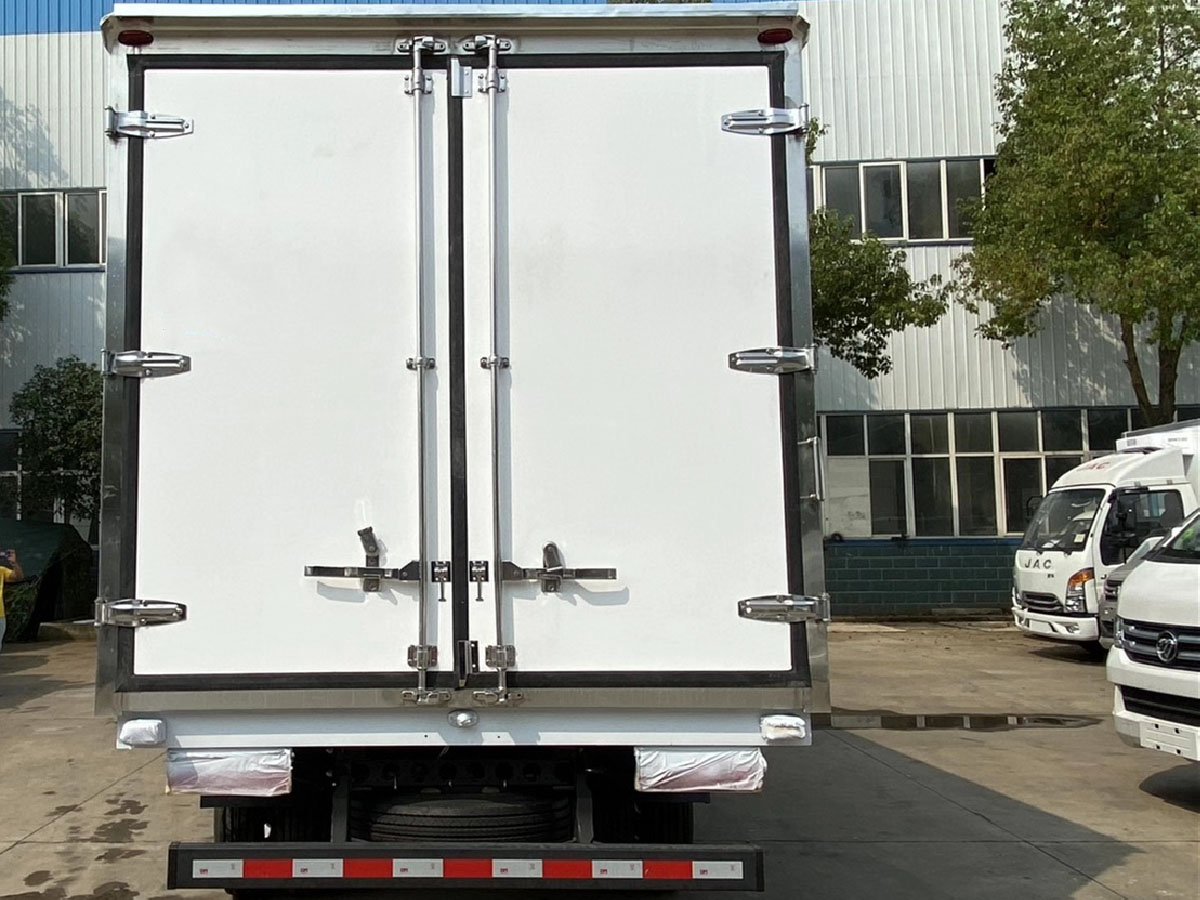 (2)廂板材質(zhì):內(nèi)外壁板選用國內(nèi)優(yōu)質(zhì)玻璃鋼(不吸光、隔熱性好、硬度強(qiáng)、抗氧化);中間保溫層為XPS擠塑聚笨板或聚氨酯;廂體厚度8CM。地板采用鋁花紋板,門邊條采用迷宮式橡膠密封條。