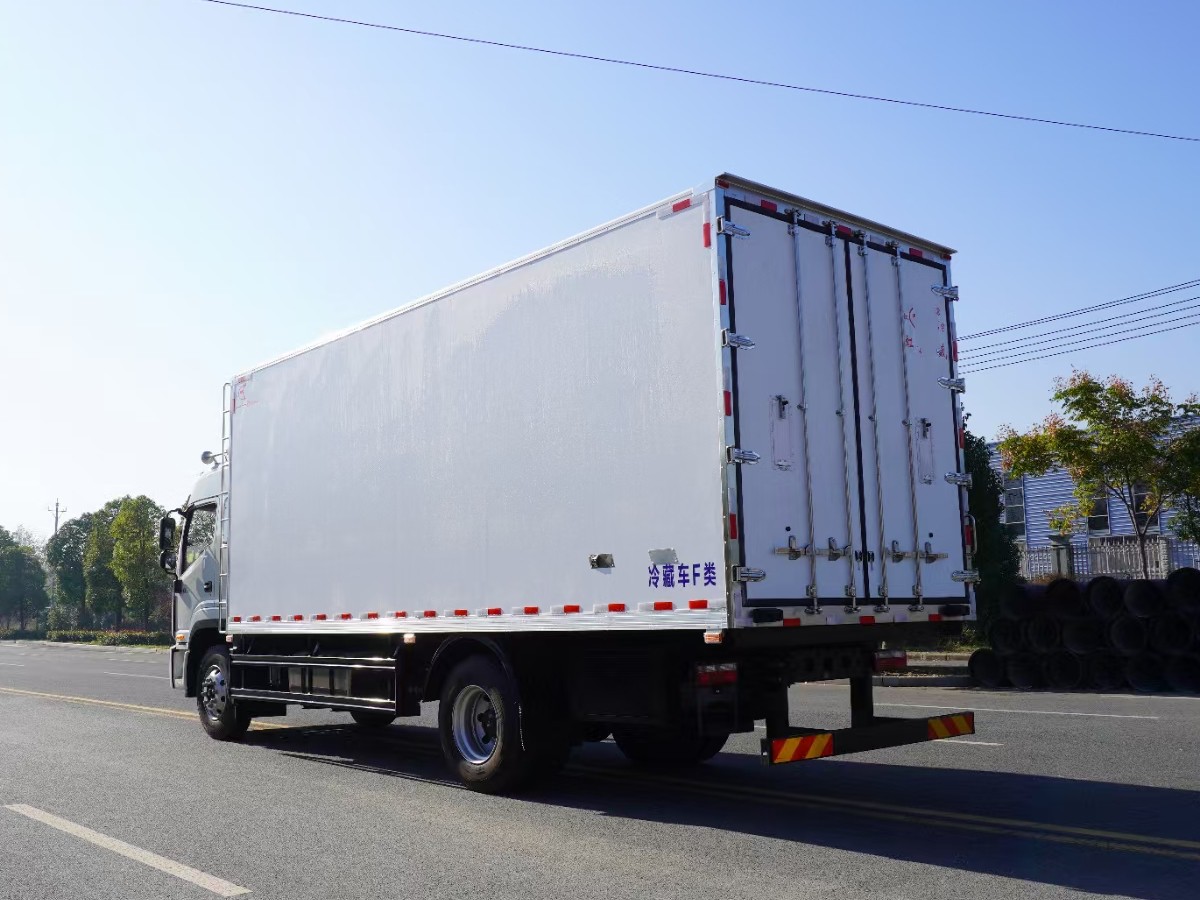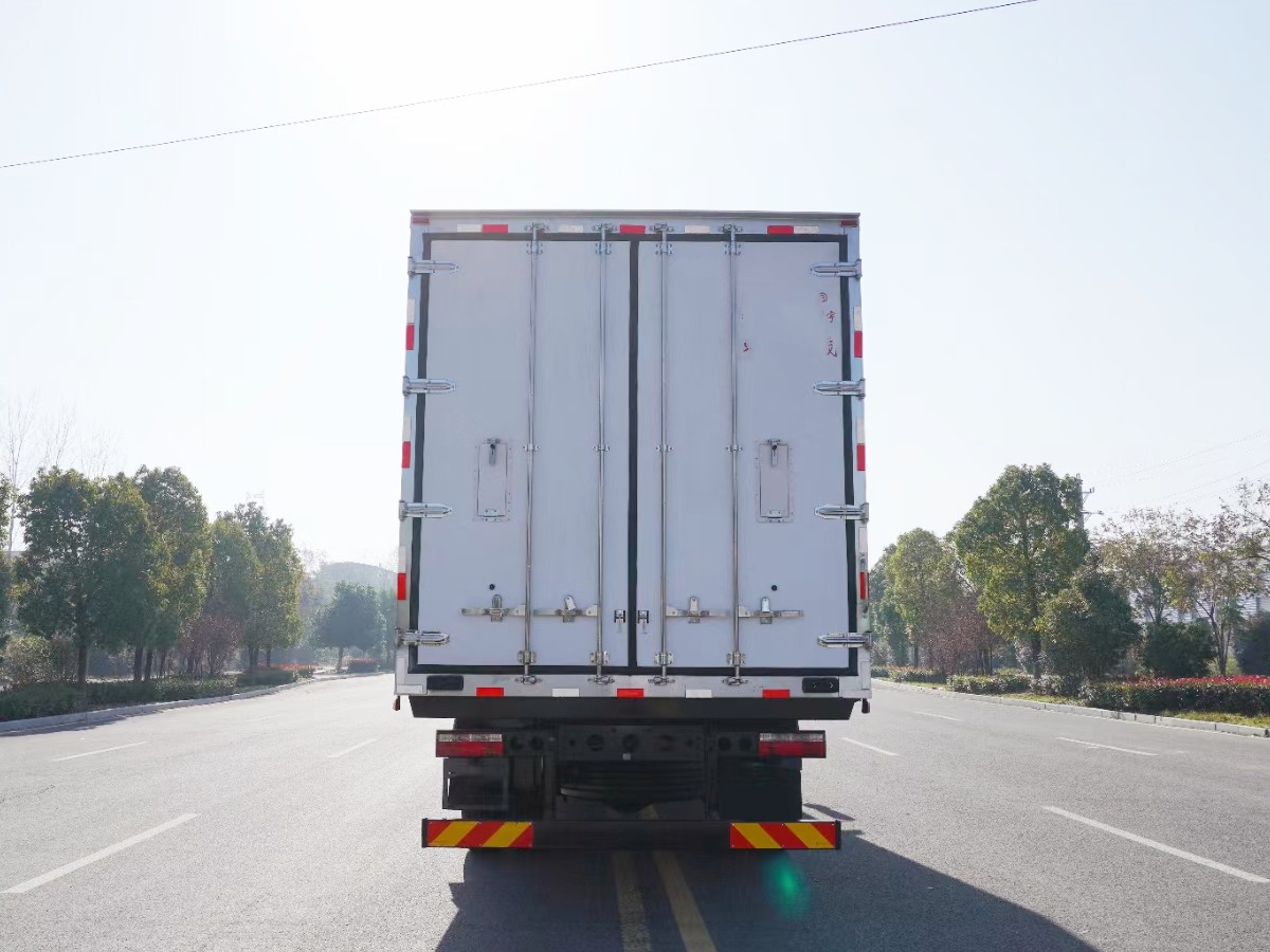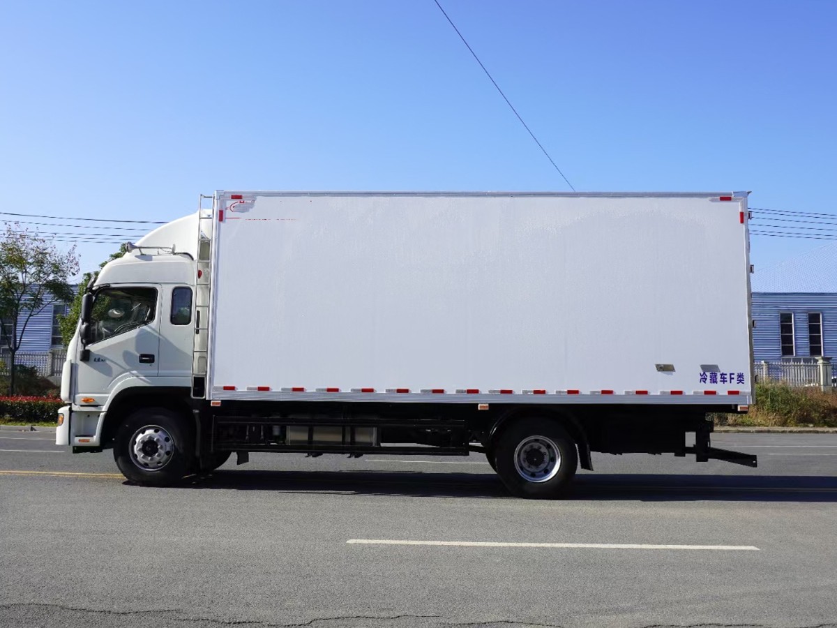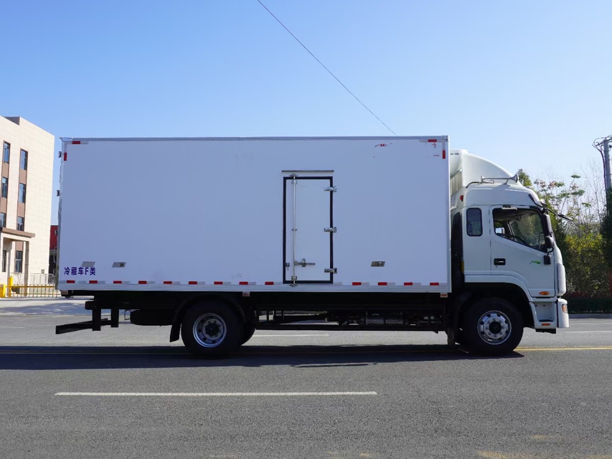 (2)廂板材質:內外壁板選用國內優質玻璃鋼(不吸光、隔熱性好、硬度強、抗氧化);中間保溫層為XPS擠塑聚笨板;廂體厚度8CM。地板采用鋁花紋板,門邊條采用迷宮式橡膠密封條。