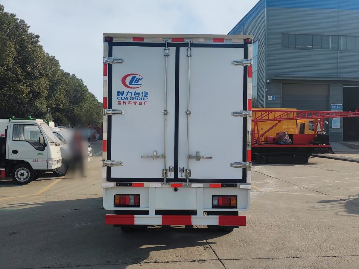 (2)廂板材質:內外壁板選用國內優質玻璃鋼(不吸光、隔熱性好、硬度強、抗氧化);中間保溫層為XPS擠塑聚笨板或聚氨酯;廂體厚度8CM。地板采用鋁花紋板,門邊條采用迷宮式橡膠密封條。