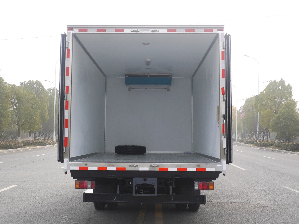 (2)廂板材質:內外壁板選用國內優質玻璃鋼(不吸光、隔熱性好、硬度強、抗氧化);中間保溫層為XPS擠塑聚笨板;廂體厚度8CM。地板采用鋁花紋板,門邊條采用迷宮式橡膠密封條。