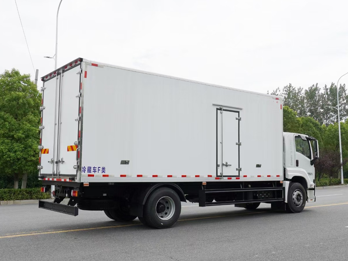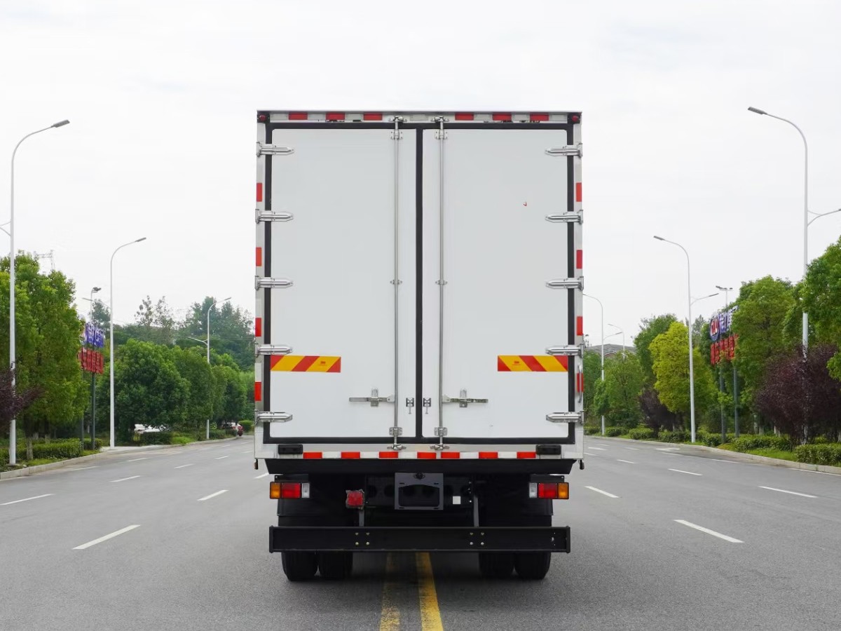 (2)廂板材質(zhì):內(nèi)外壁板選用國內(nèi)優(yōu)質(zhì)玻璃鋼(不吸光、隔熱性好、硬度強、抗氧化);中間保溫層為XPS擠塑聚笨板;廂體厚度8CM。地板采用鋁花紋板,門邊條采用迷宮式橡膠密封條。