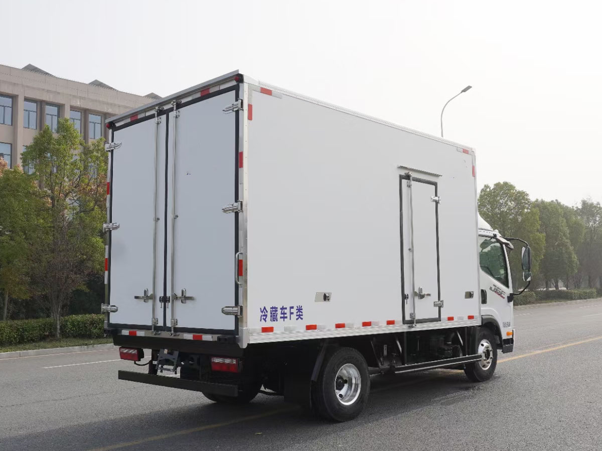 (2)廂板材質(zhì):內(nèi)外壁板選用國內(nèi)優(yōu)質(zhì)玻璃鋼(不吸光、隔熱性好、硬度強、抗氧化);中間保溫層為XPS擠塑聚笨板或聚氨酯;廂體厚度8CM。地板采用鋁花紋板,門邊條采用迷宮式橡膠密封條。