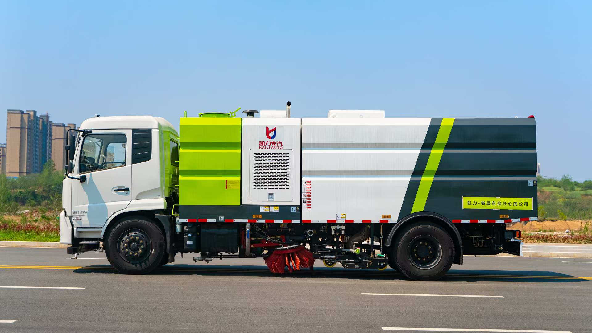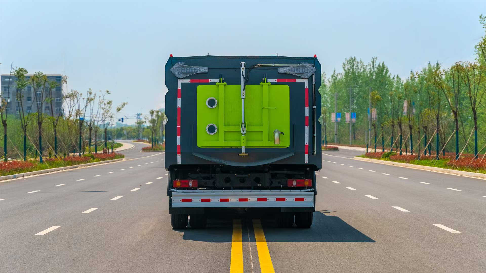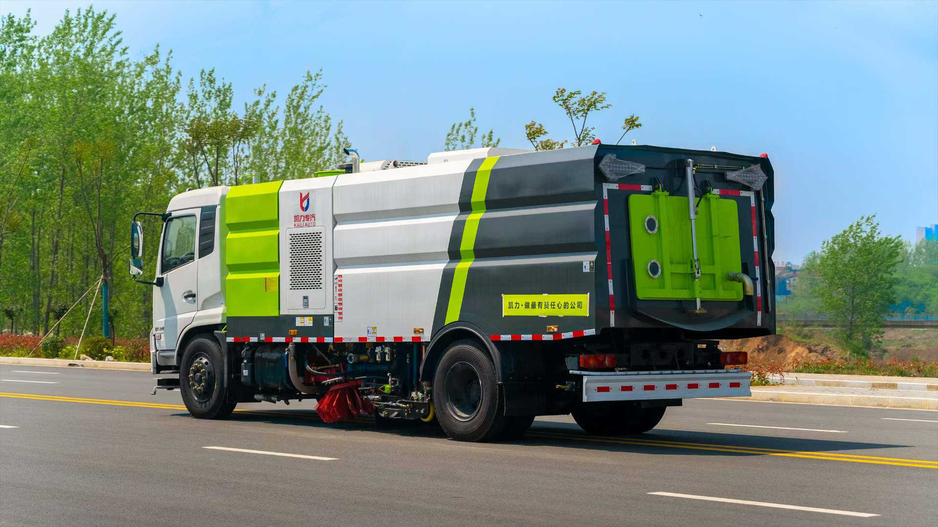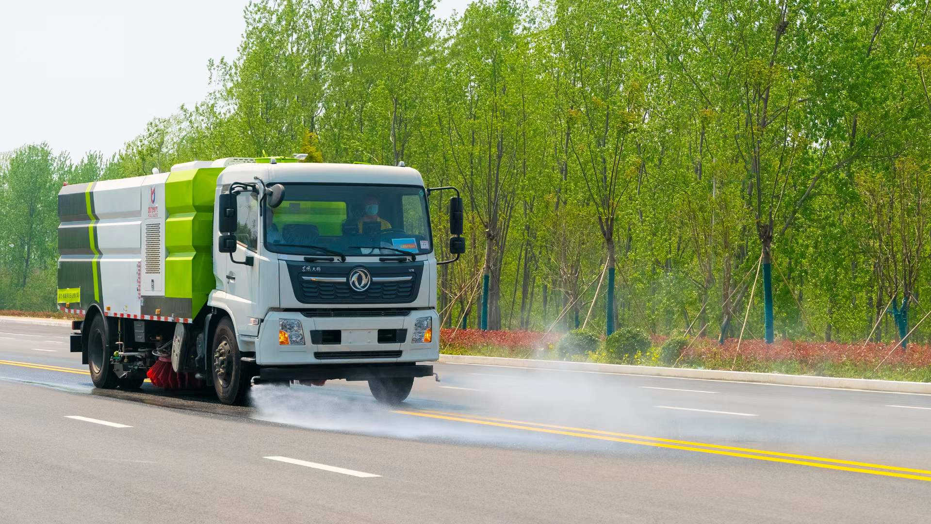 底盤電池提供動力,永磁同步電機驅動,可根據需要實時調速,取力操作與底盤行駛系統無任何關聯,用車體驗感極佳。中置2掃盤,三洋馬達,GTM高壓水泵,皖液齒輪泵,海普瑞斯液壓油缸,萬向高壓路沿清洗,免維護離心式風機,不銹鋼水箱、垃圾箱,不銹鋼高壓管路、施耐德控制開關、美國傳感器、尾部LED箭頭燈;垃圾箱、水箱均帶防溢或低水位報警裝置,倒車及洗掃狀態室內監控系統,尾部帶電控操作系統,15M高壓沖洗卷盤,最大清掃寬度3.5m,高壓沖洗21m。 電氣系統由底盤車電路專用工作裝置操作控制電路組成。
