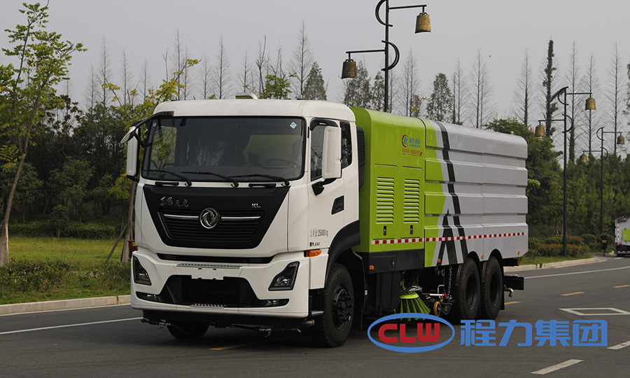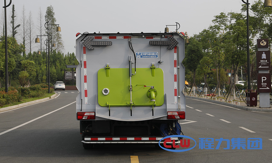 該車是采用東風天龍底盤改裝而成,集掃路車、灑水車和高壓清洗車功能于一體,具備路面清掃、路面洗刷、高壓清洗、低壓沖洗、路緣石洗刷、垃圾收集、污水回收、噴霧降塵和道路隔離墻清洗、小廣告清洗等多種作業功能。具有先進的智能化一鍵控制技術,全部作業均在駕駛室內完成,作業時,只需選定作業模式后,各作業機構的啟動與關停由程序自動控制。有“全洗掃”、“左洗掃”、“右洗掃”、“全掃”、“左掃”和“右掃”、“全洗”、“左洗”和“右洗”9種作業模式可供選擇。